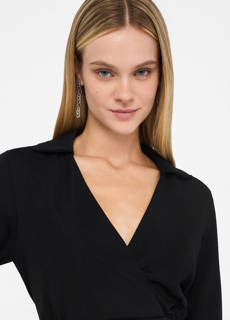 Abito in jersey stretch scollo a V con cintura sur ton.