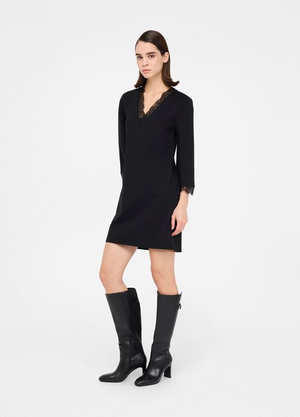 Abito scollo a V in punto Milano con dettagli in pizzo.