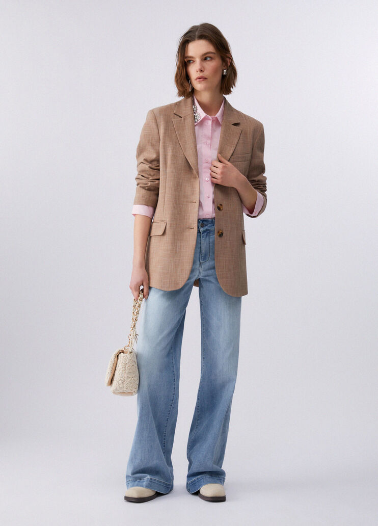 Blazer monopetto in viscosa mélange dal fit morbido con foulard stampato in dotazione da utilizzare anche come cintura.