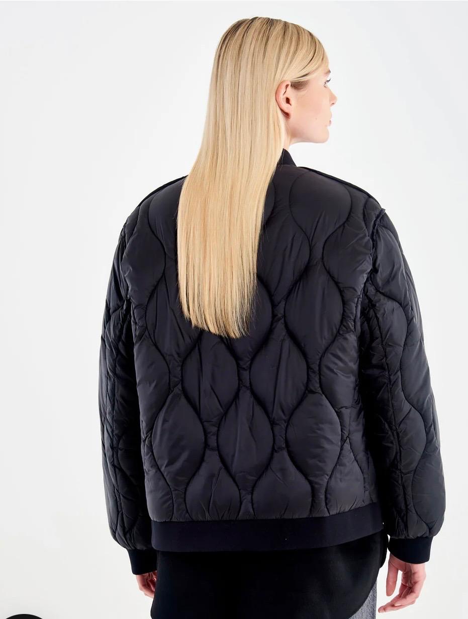 Bomber overshirt trapuntato. Collo alla coreana e polsini . Fondo bomber doppio in lana.