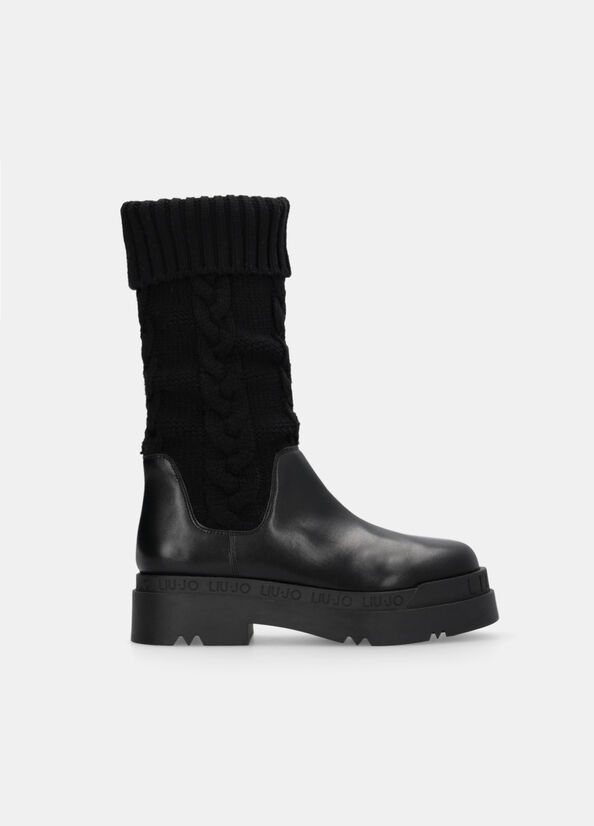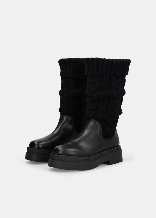Boot con gambale in maglia a trecce. Altezza suola: 5 cm. Altezza gambale: 30 cm.