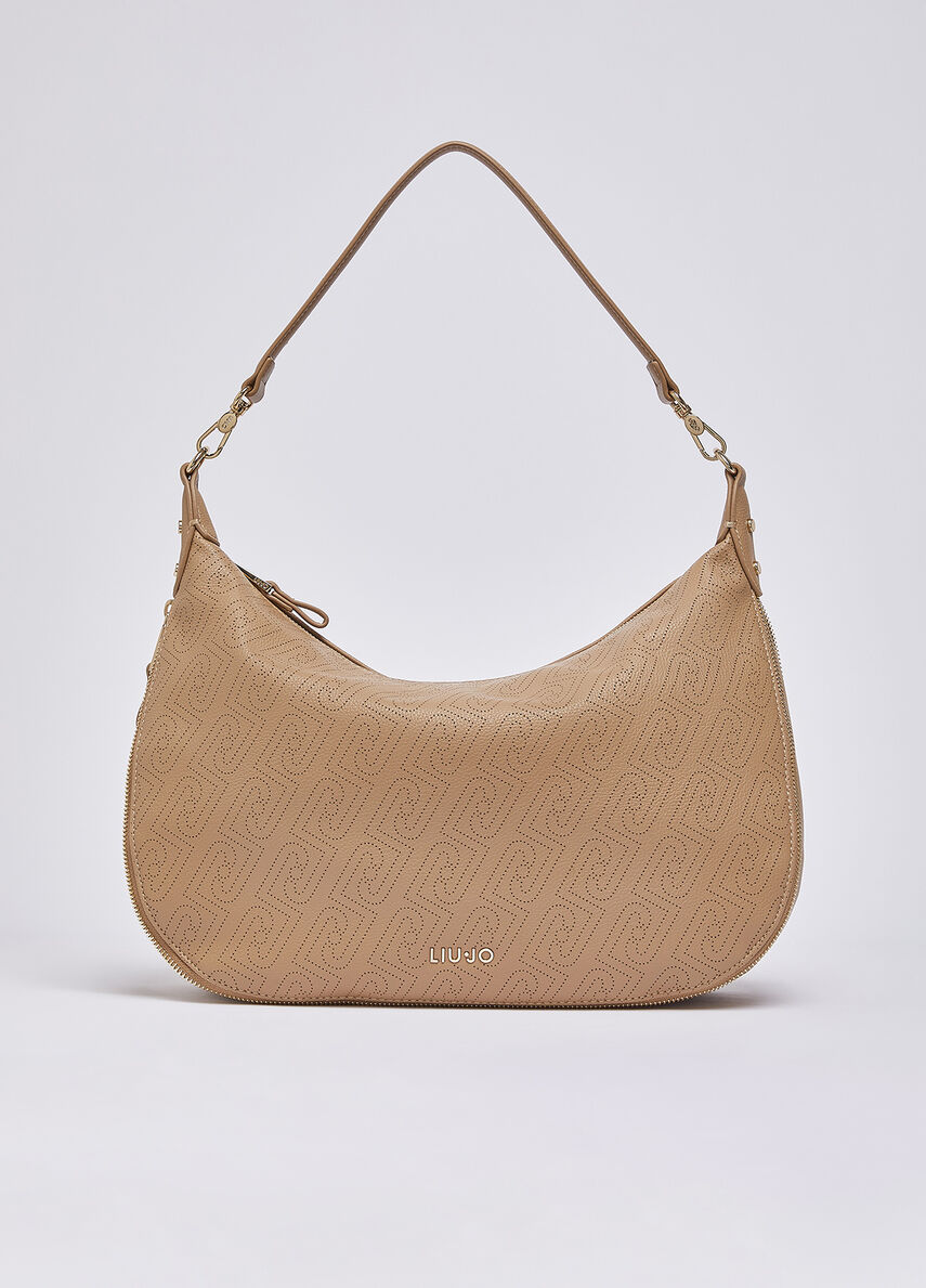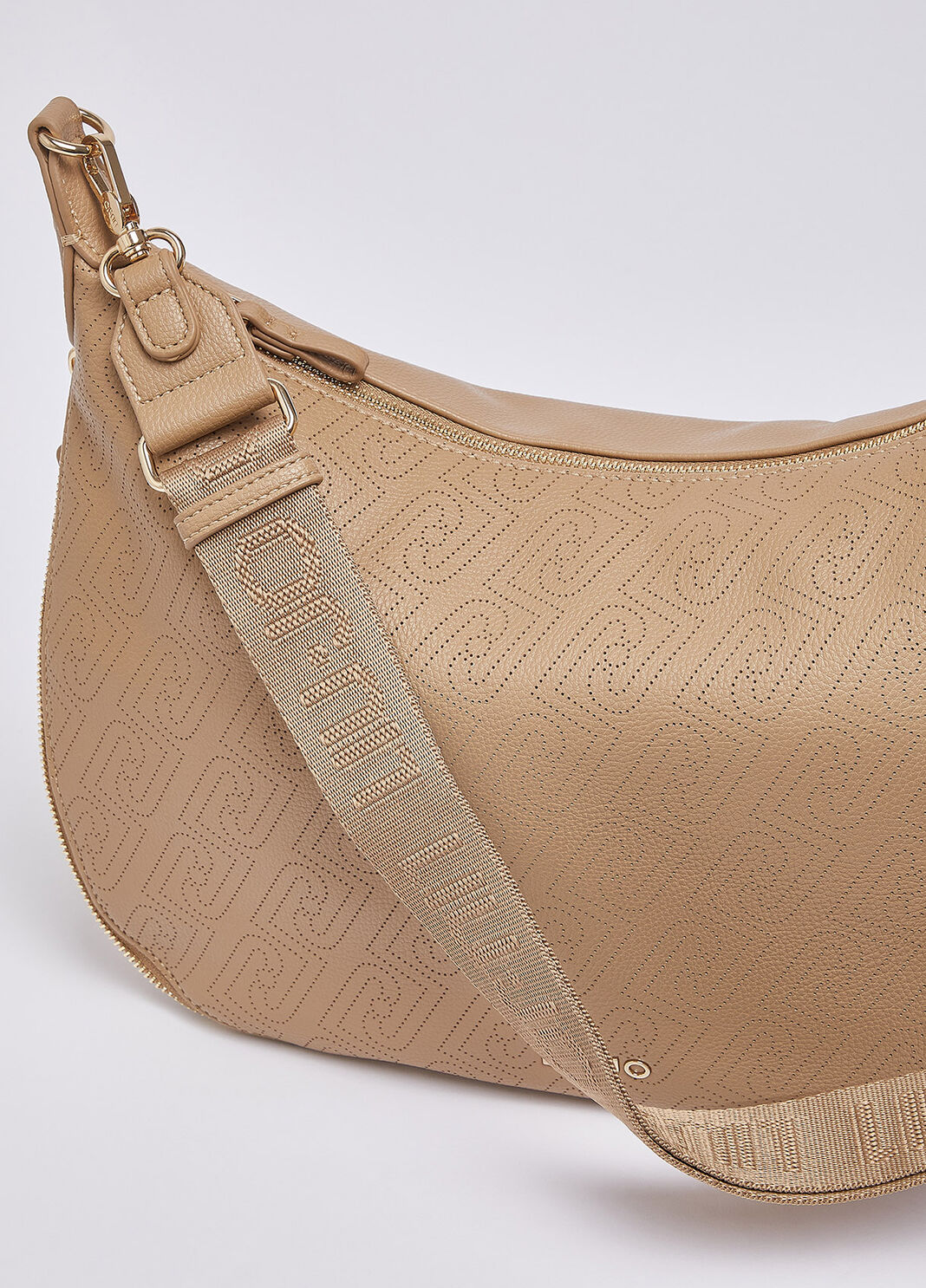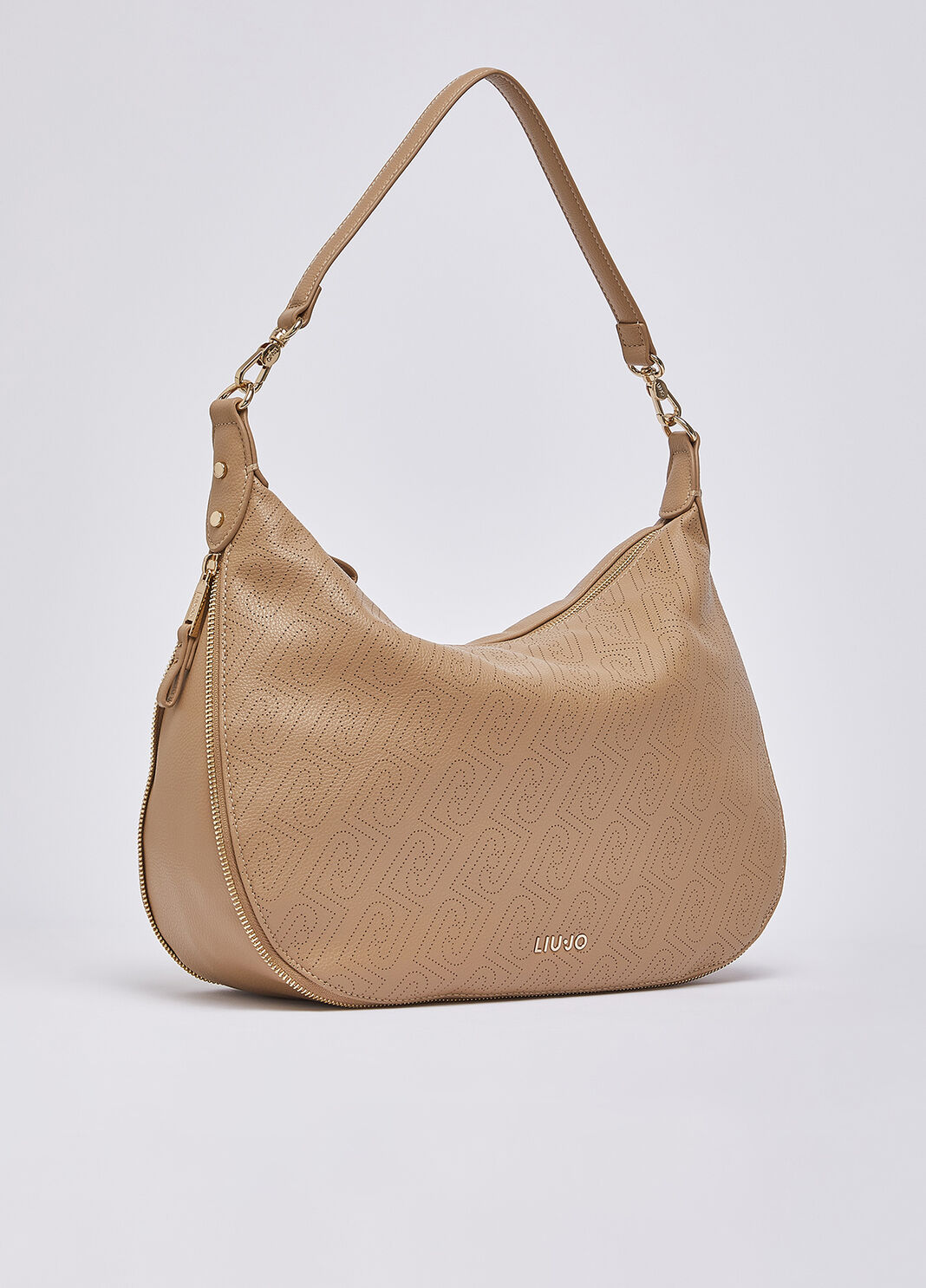 Borsa hobo grande, effetto bottalato e laserato, tracolla in abbinamento. Misure: 39 x 10 x 30 cm.