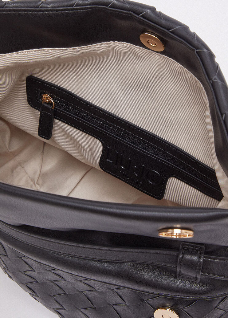 Borsa a spalla con morbido intreccio, chiusura con patta magnetica e dettaglio logo laterale. Prodotto “Liu Jo Better”. Misure: 30 x 11 x 18 cm.