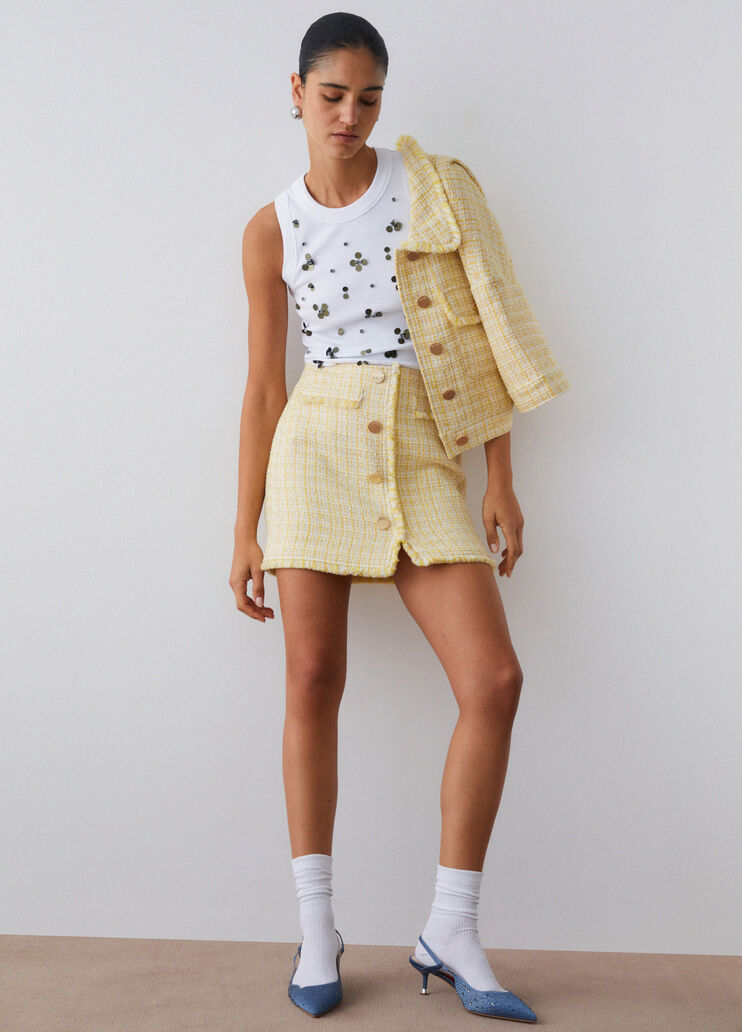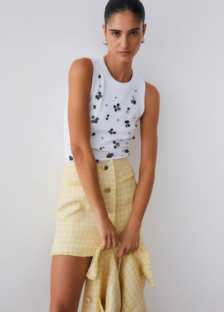 Canotta in cotone stretch con lavorazione a coste e applicazioni gioiello.