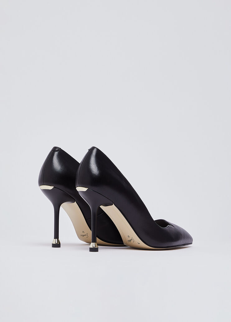 Décolleté con tomaia in nappa, punta affusolate tacco a spillo con altezza 9,5 cm.