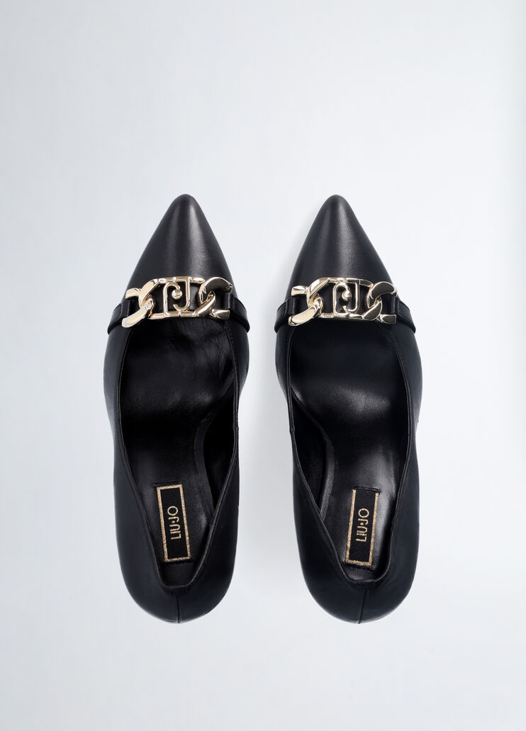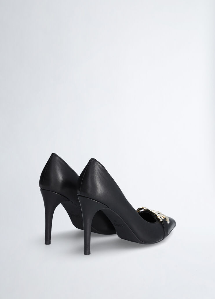 Décolleté in morbida nappa con dettaglio catena. Tacco a spillo. Altezza tacco: 9,5 cm