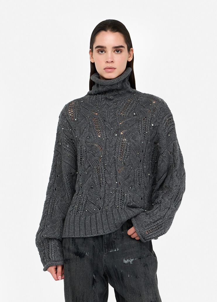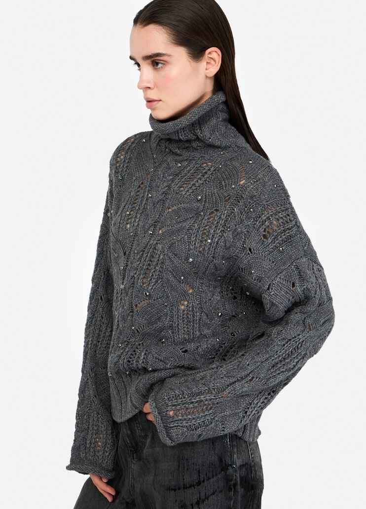 Dolcevita lana con lavorazione traforata e pietre gioiello.