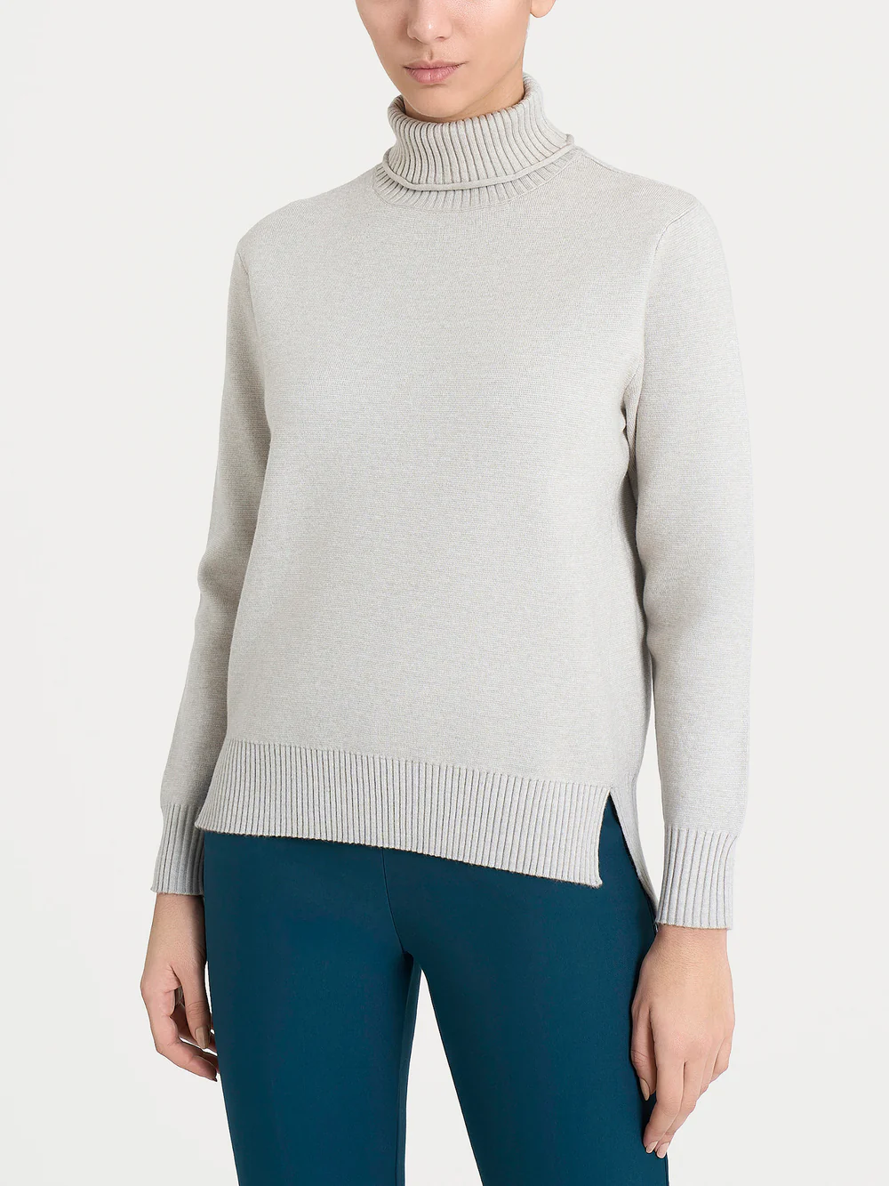 Maglia con collo roulè in viscosa super soft dal fit regolare. Spacchi sul fondo.