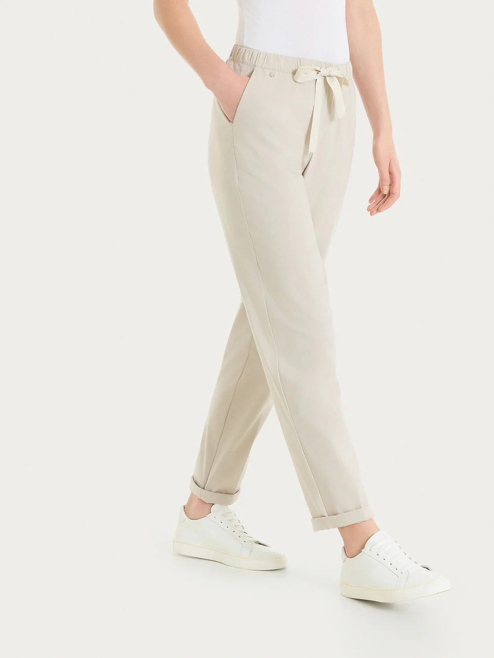 Pantalone jogger con elastico in vita e coulisse regolabile.