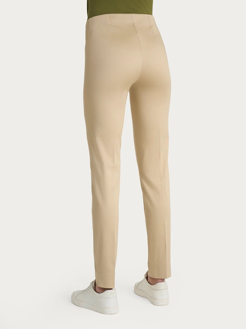 Pantalone stretch a sigaretta  con elastico in vita, spacchetti laterali alla caviglia. Colore crema.