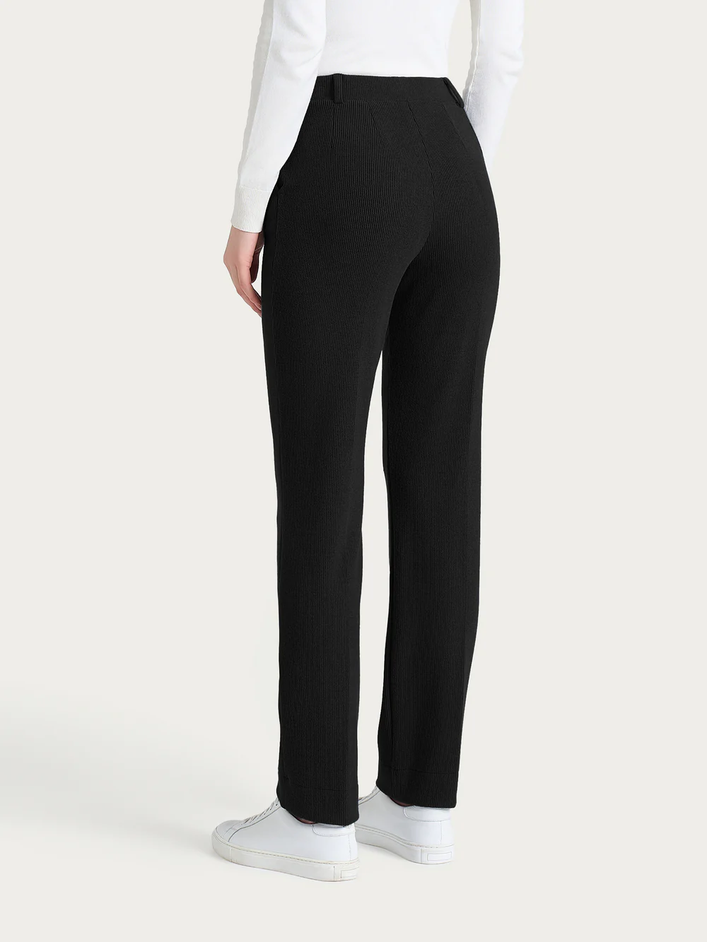 Pantalone in velluto elasticizzato, gambale dritto con tasche e passanti.