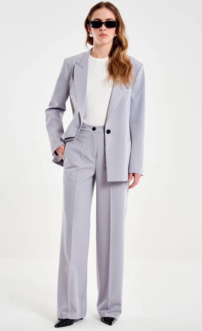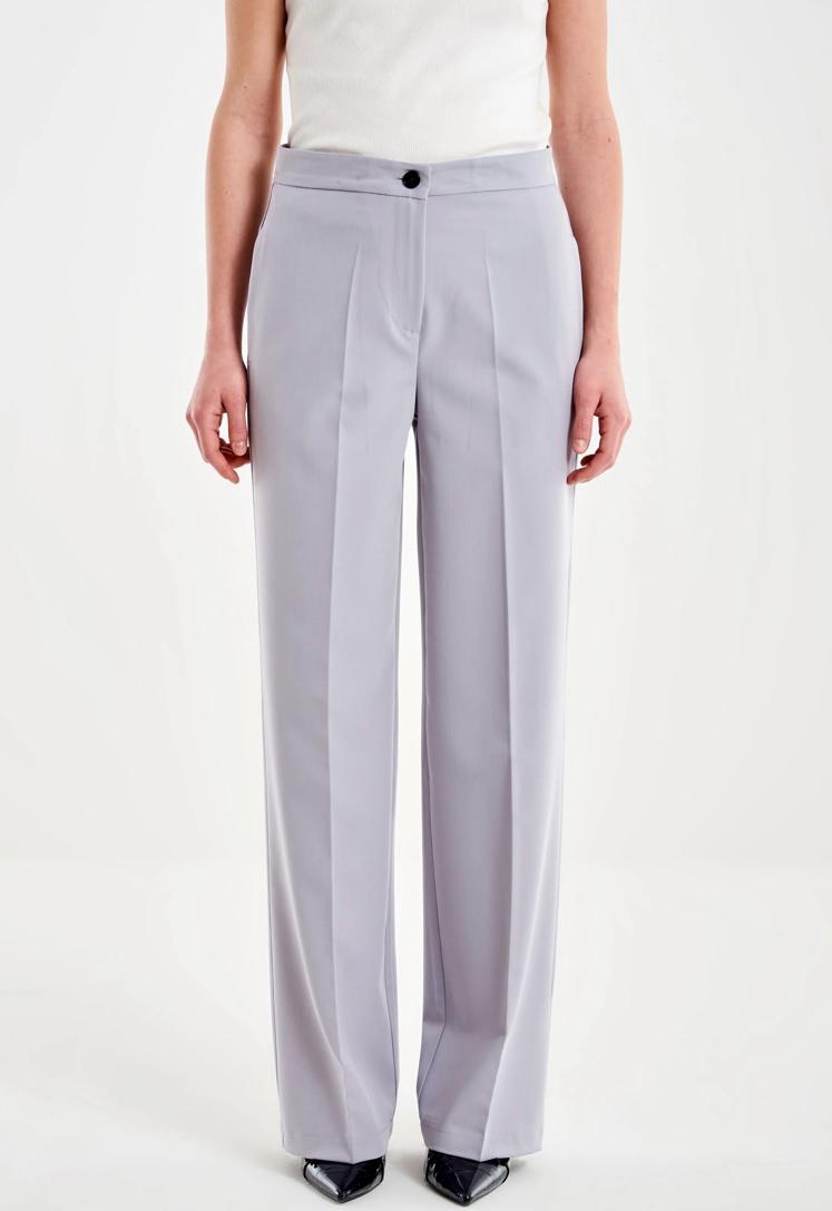 Pantalone a palazzo. Chiusura con bottone e zip, vita media.