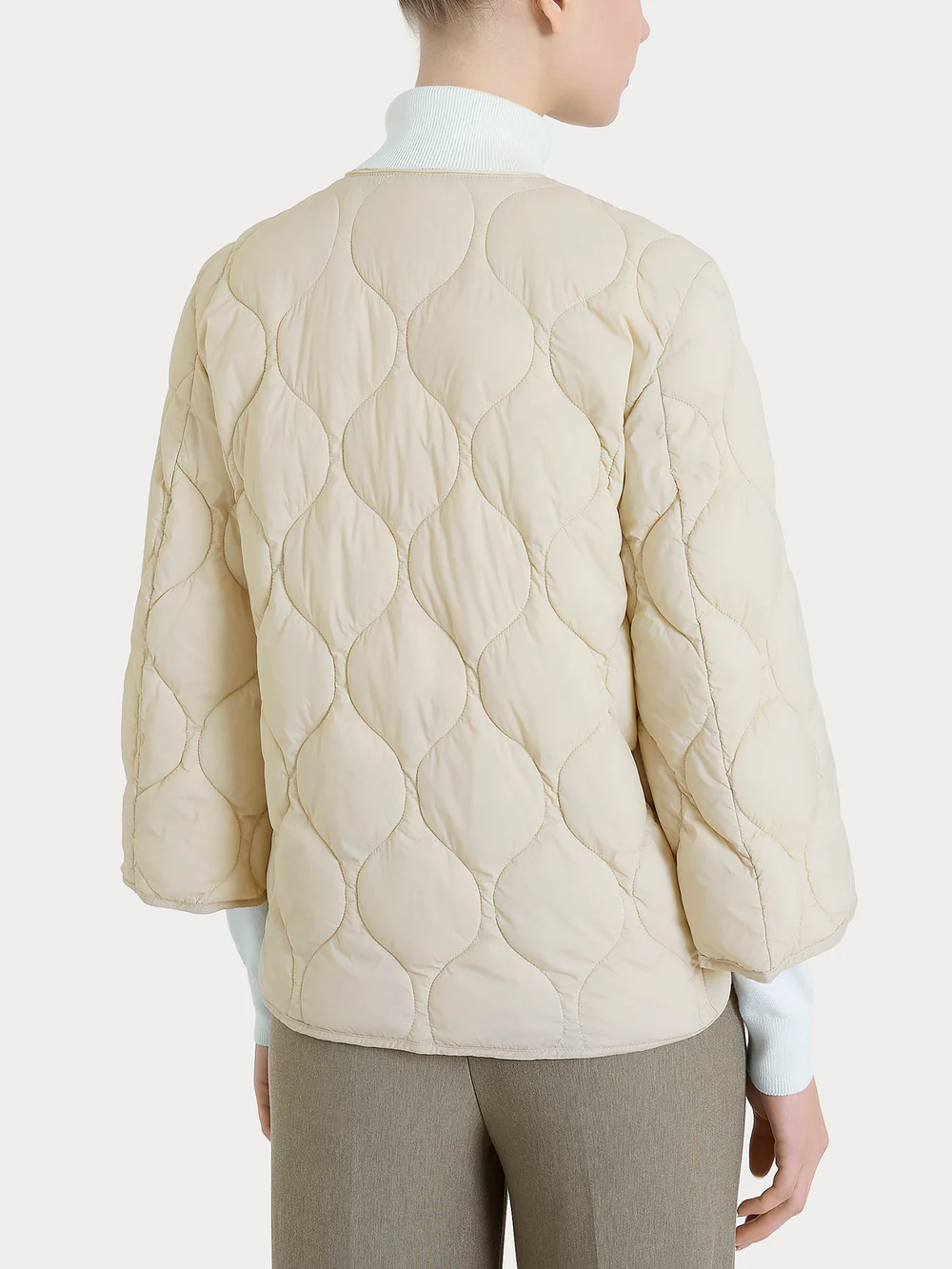 Piumino leggero con manica 3/4 ad imbuto. Chiusura con zip.