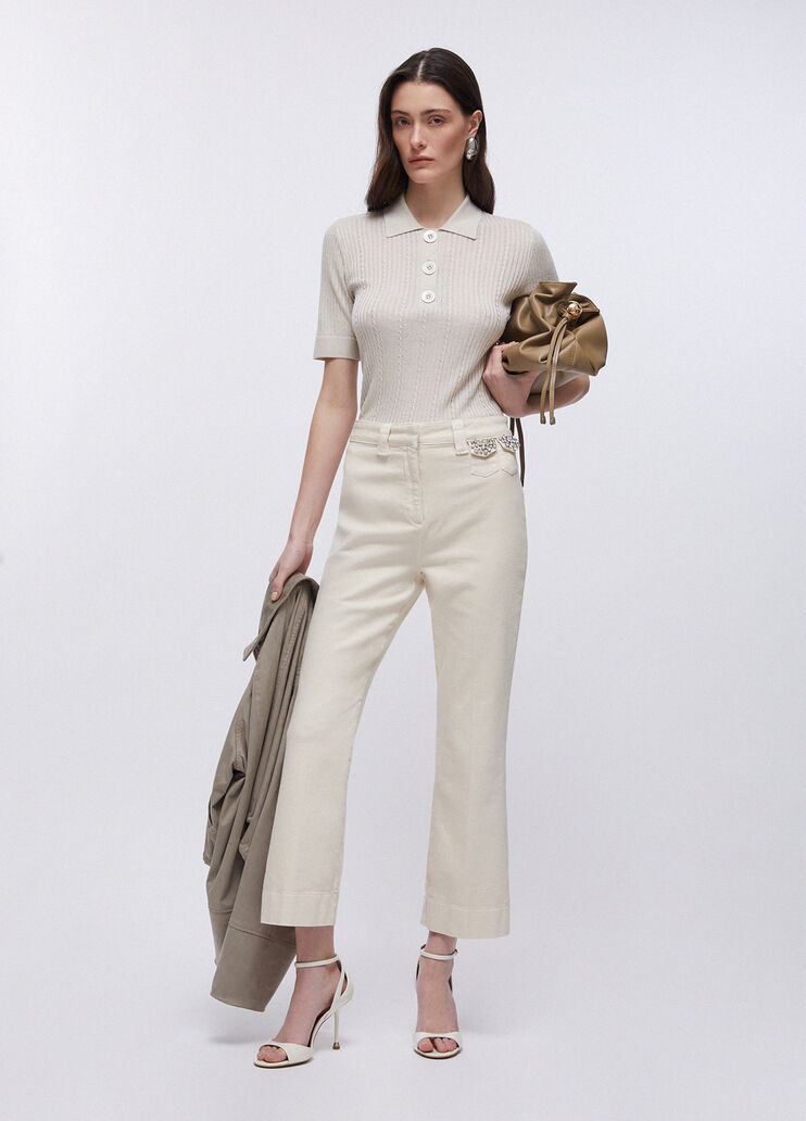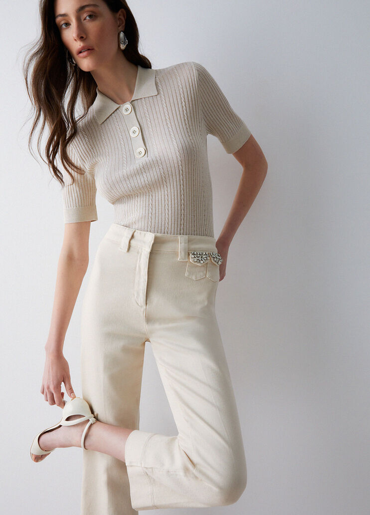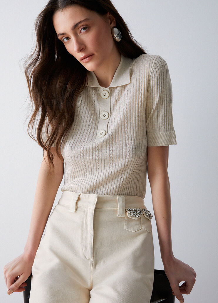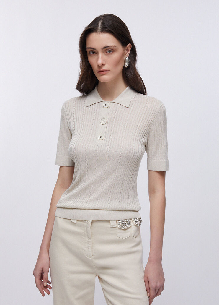 Polo a maniche corte in viscosa stretch con lurex dal fit regolare. Prodotto “Liu Jo Better”