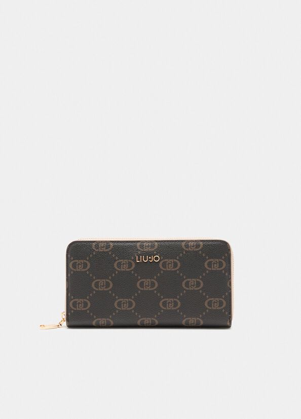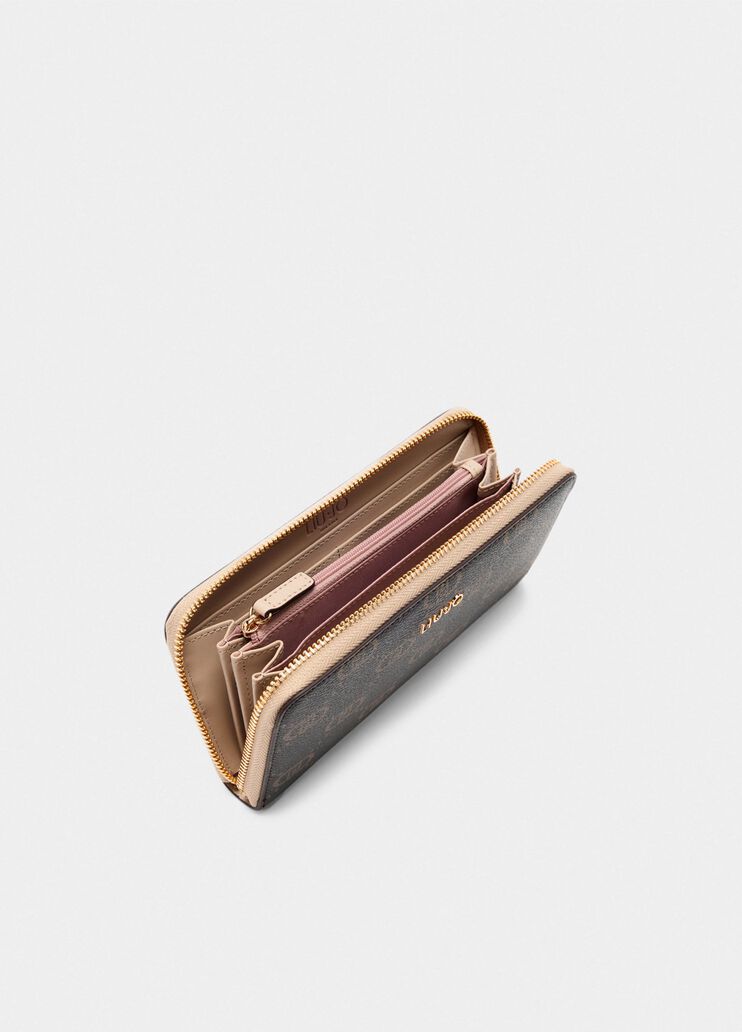 Portafoglio stampa logo all over, scomparto per tessere, banconote e monete. Chiusura con zip. Prodotto “Liu Jo Better”. Misure: 19 x 2 x 10 cm.