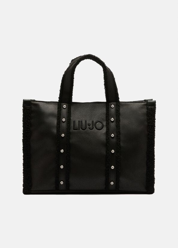 Shopping bag  grande in tessuto spalmato  effetto montone con comodi manici e tracolla regolabile e rimovibile. Chiusura con zip. Misure: 40 x 30 x 20 cm.