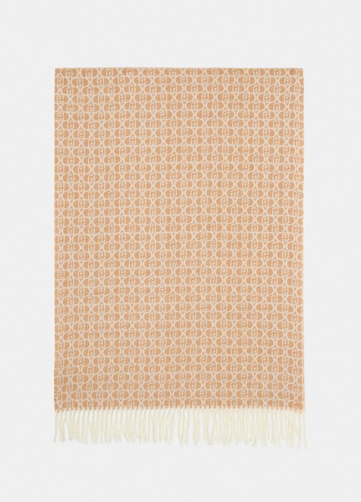 Sciarpa jacquard con logo monogram all over, bordi con frange. Misure 65 x 180 cm.