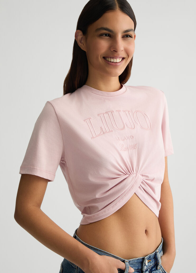 T-shirt in jersey di cotone con logo ricamato sul davanti. Prodotto “Liu Jo Better”