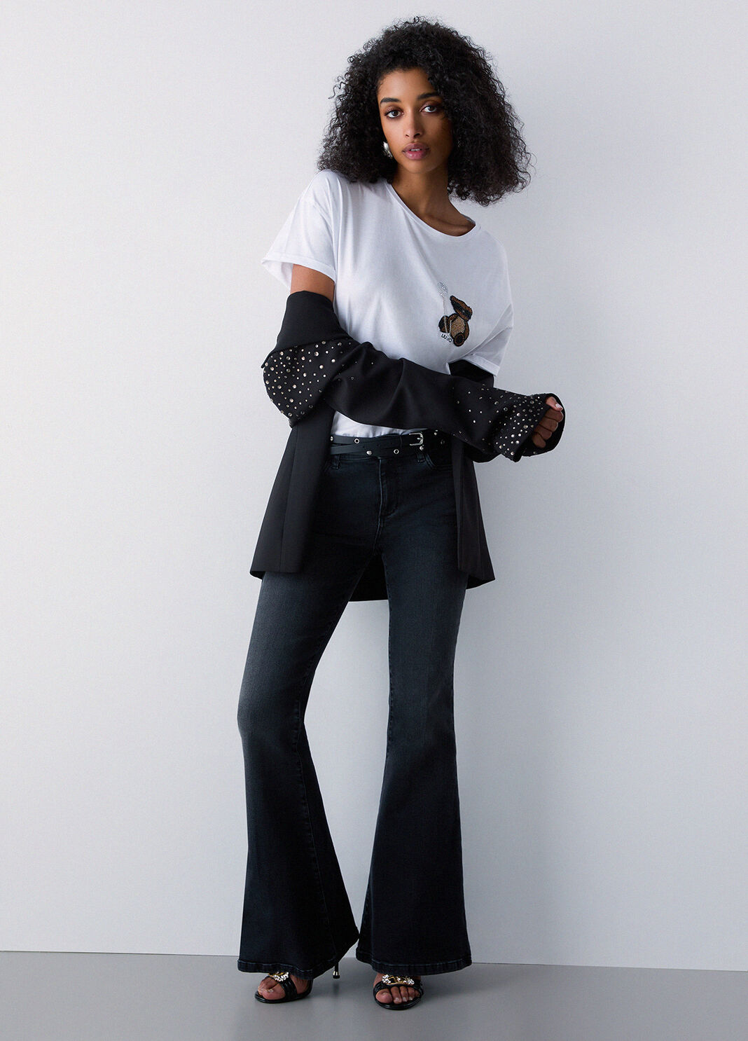 T-shirt girocollo in jersey di cotone a maniche corte con orsetto, vestibilità morbida. Prodotto “Liu Jo Better”