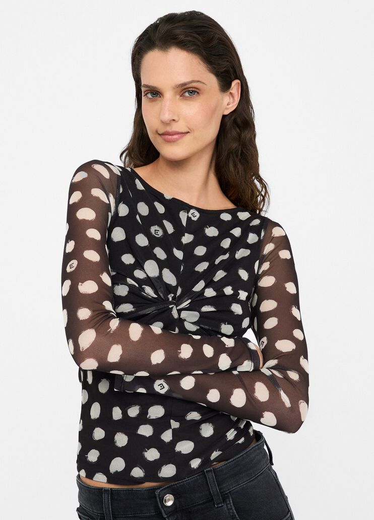 T-shirt a maniche lunghe in jersey stretch con stampa a pois all over. Prodotto “Liu Jo Better”