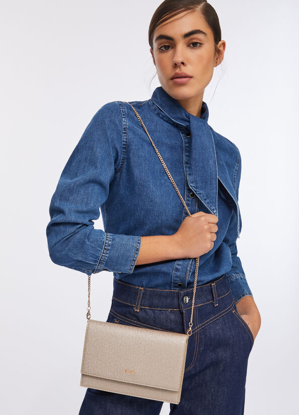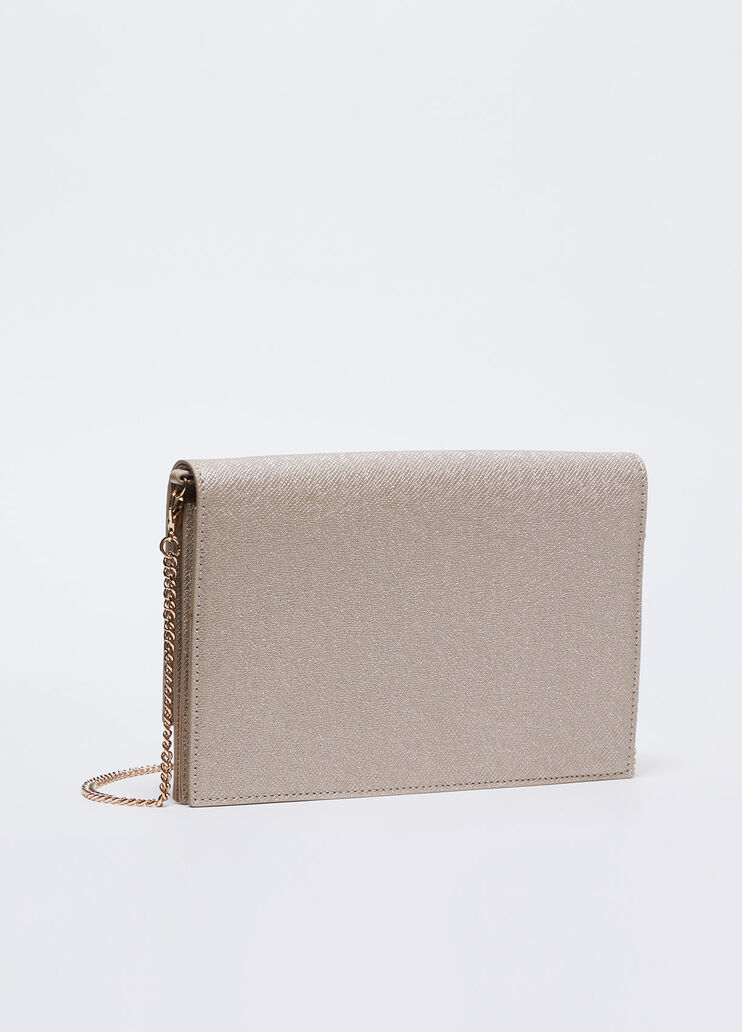 Pochette con tracolla in metallo removibile, chiusura con patta a magnete e logo sul avanti. Misure: 22 x 4 x 14.5 cm.